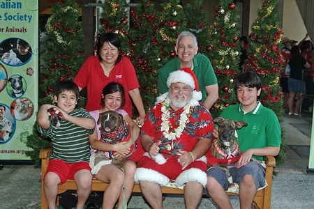 This is why decorated Christmas trees in family photos sent to relatives on my husband’s side are referred to as “Buddha Bushes” set up for Amida’s belated birthday (now, we just simply haul the tree and decorations to my parents’ house to avoid having the inevitable bachi that will come our way for using Buddha to keep the peace). The potato pancakes are not called Chanukah latkes but hash brown patties which adorned with furikake and dipped in tonkatsu sauce instead of the traditional sour cream and applesauce. If all else fails, we just divert people’s attention by throwing all of our pets in the mix—hoping they will be more concerned about the zoo living in our home than by the fact that the kids are close vicinity to good old Christian Saint Nicholas.