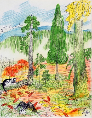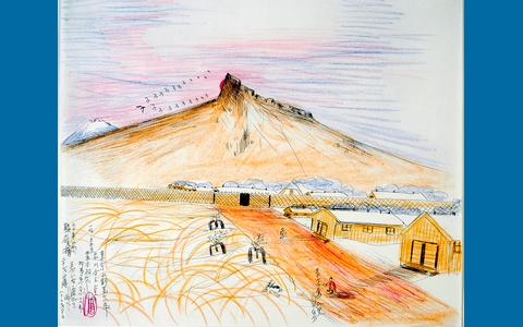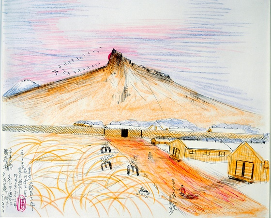 Jimmy Tsutomu Mirikitani was born in Sacramento, California, in 1920 and raised in Hiroshima, Japan. At age 18, he returned to the United States to pursue a career in art and escape the growing militarism in Japan. He was living with his sister Kazuko and her family in Seattle, Washington, when the Japanese attacked Pearl Harbor in 1941. Executive Order 9066 forced Jimmy and his sister to leave their home and move to separate internment camps hundreds of miles apart. Kazuko was sent to the Minidoka camp in Idaho while Jimmy was sent to Tule Lake, in northern California.