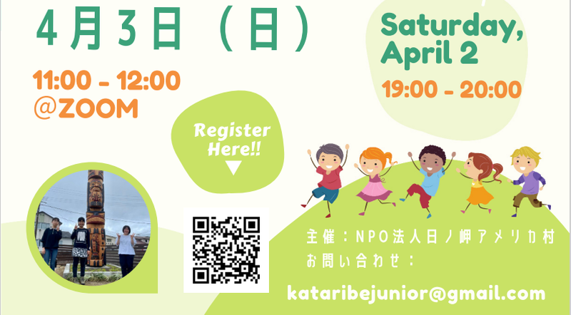 Los estudiantes de Kataribe Juniors están aprendiendo sobre la historia del área de Mio en Wakayama ken y los inmigrantes canadienses y asumen el papel de personajes históricos al contar sus historias. ¡kataribejunior@gmail.com para obtener más información sobre este evento en línea!
