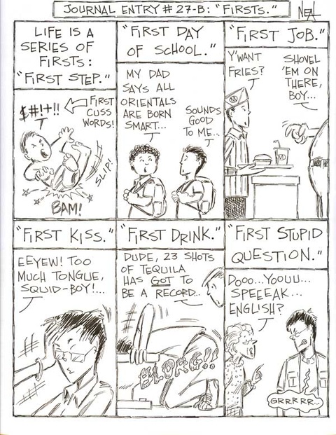 Un diario visual/dibujos animados semanales sobre un estadounidense de ascendencia japonesa de cuarta generación que se molesta fácilmente. La vida es una serie de "primicias". Pregúntale a Neal.