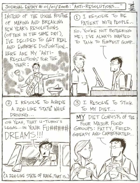 Un diario visual/dibujos animados semanales sobre un estadounidense de ascendencia japonesa de cuarta generación que se molesta fácilmente. Esta semana, Neal hace sus "anti-resoluciones" para el nuevo año.