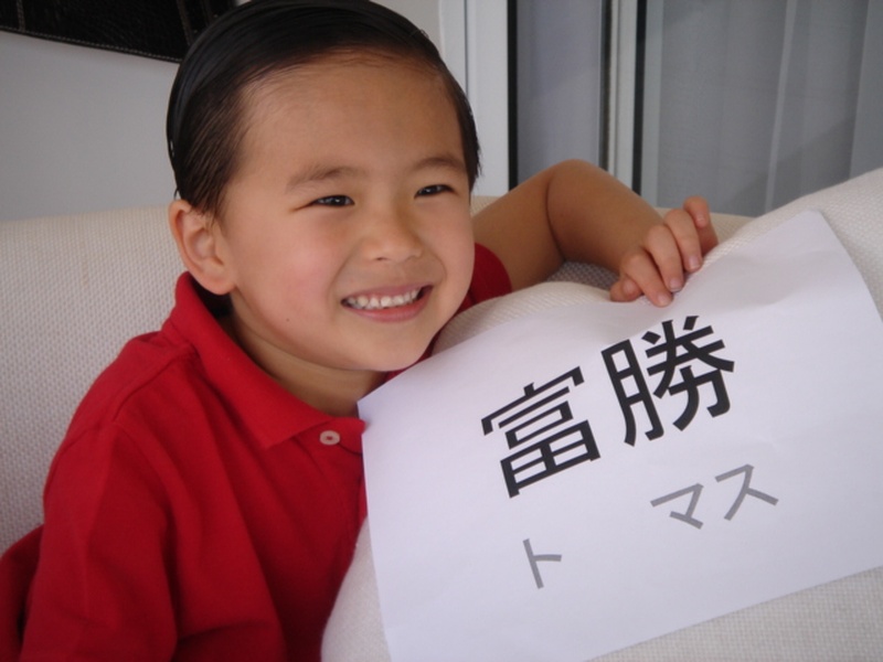 Mi primer nieto nació en Estados Unidos y mi hija le puso el nombre americano THOMAS y también investigó qué ideogramas se adaptarían para leer en