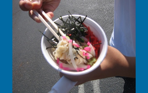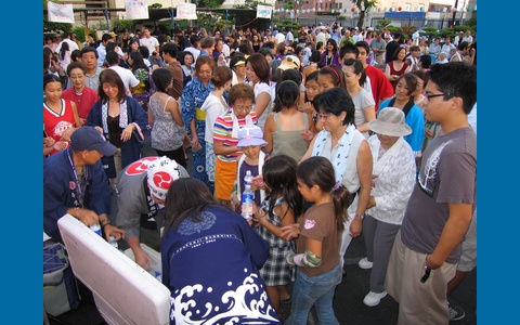 Después del trabajo el sábado 28 de julio de 2007, fui caminando hasta el obon del Templo Budista Higashi Honganji 2007 para encontrarme con mis amigos y comer algo, bailar y divertirme un poco. Lo primero que hice cuando llegué fue comprar manju, algo que espero con ansias en cada obon. Luego vi algunas actuaciones en el escenario y jugué a una carrera de patitos de goma. ¡Salí victoriosa! El Templo Budista Higashi Honganji está ubicado en 505 E. 3rd Street en Los Ángeles, CA, 90013. Mis amigos y yo comimos y disfrutamos del entretenimiento. Pero, realmente estábamos esperando que comenzara el baile. ¡Estábamos tan emocionados cuando lo hizo! ¡Había tanta gente allí que nos empujaron fuera de nuestro carril de baile varias veces! Esta colección presenta imágenes de este obon y fotografías de actividades en las que participé. ¡Disfrútenlas! Para ver colecciones de otros obons, consulte a continuación: Obon de la Iglesia Budista del Condado de Orange de 2007 Obon de la Misión Soto de Zenshuji y Nishi Hongwanji Obon de Los Ángeles - 8 de julio de 2007 Obon del Templo Budista Hongwanji del Valle de San Fernando