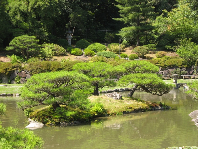 Turtle Island es una pequeña área en el medio del lago donde las tortugas pueden sentarse y tomar el sol. Aparentemente, los pinos de la isla simbolizan las grullas japonesas (tsuru). -- Turtle Island está en el medio del lago en el Jardín Japonés del Arboreto de Washington. Según su folleto, los pinos de la isla simbolizan las grullas japonesas. Esta foto fue tomada el 11 de julio de 2007. Jardín Japonés de Seattle en el Arboreto del Parque Washington 1075 Lake Washington Boulevard East North of East Madison Street 206.684.4725 Obtenga más información sobre el jardín en línea >>