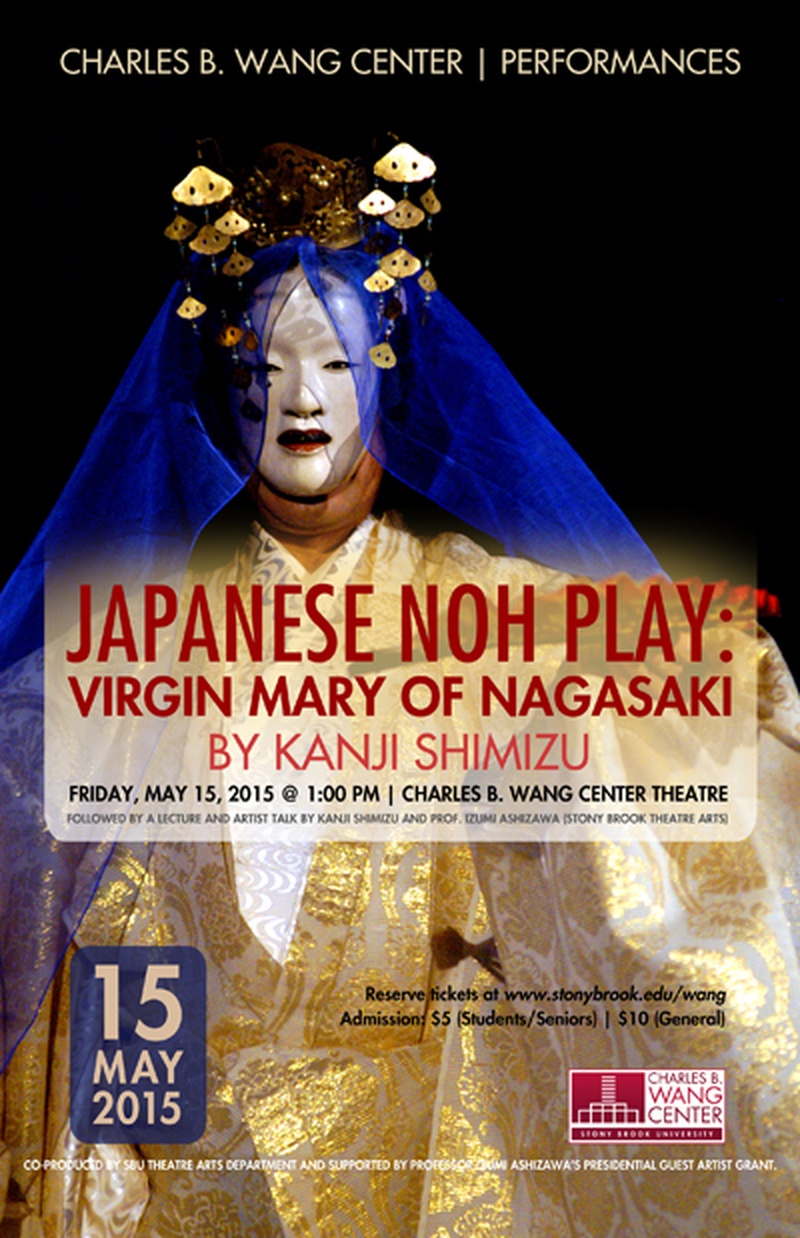 A performance será seguida por uma conversa com Kanji Shimizu e a Professora Izumi Ashizawa (Departamento de Artes Cênicas de Stony Brook) O teatro Noh é uma forma vital de drama clássico japonês que remonta ao século IX. O renomado mestre Noh Kanji Shimizu dá vida a essa forma antiga de uma forma notavelmente contemporânea nesta peça baseada na Virgem Maria de Nagasaki de Tomio Tada, uma peça que gira em torno do bombardeio atômico da cidade. Após a performance, Shimizu fala sobre os aspectos estilísticos e técnicos da atuação em Noh, como postura e projeção, e refletirá sobre a relevância contínua dessa forma rica. Coproduzido pelo Departamento de Artes Cênicas da SBU e apoiado pela Bolsa Presidencial para Artista Convidado da Professora Izumi Ashizawa. Ingressos: Admissão: US$ 10 (Geral) / US$ 5 (Estudantes) Sobre o Artista: Kanji Shimizu é um professor mestre de Noh na Universidade de Arte da Cidade de Okinawa, no Japão. Ele é treinado em Noh tradicional, mas também explora suas possibilidades experimentais. Shimizu se apresentou no Lublin Music Festival na Polônia, no Kerala State Performance Festival na Índia e na Japan Society na cidade de Nova York. DETALHES