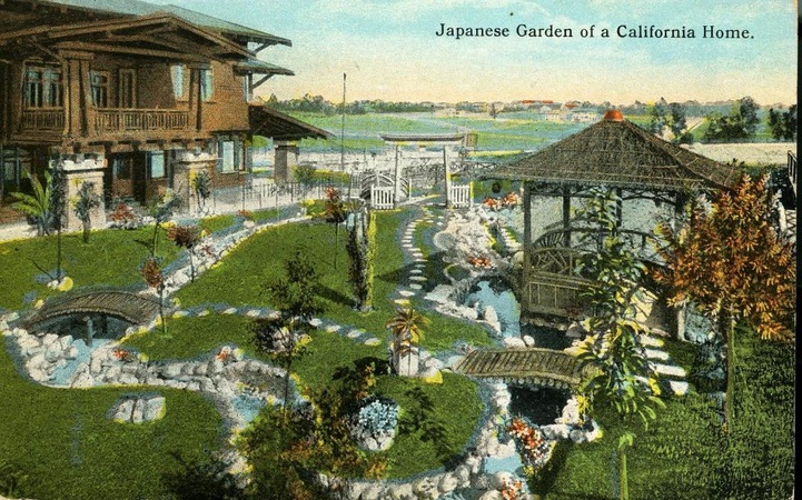 Cartões postais antigos de jardins japoneses dos Estados Unidos.