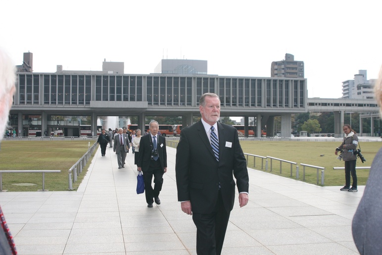 Rev. Brooks Andrews seguido por Herbert Minonu Tsuchiya no Parque da Paz de Hiroshima